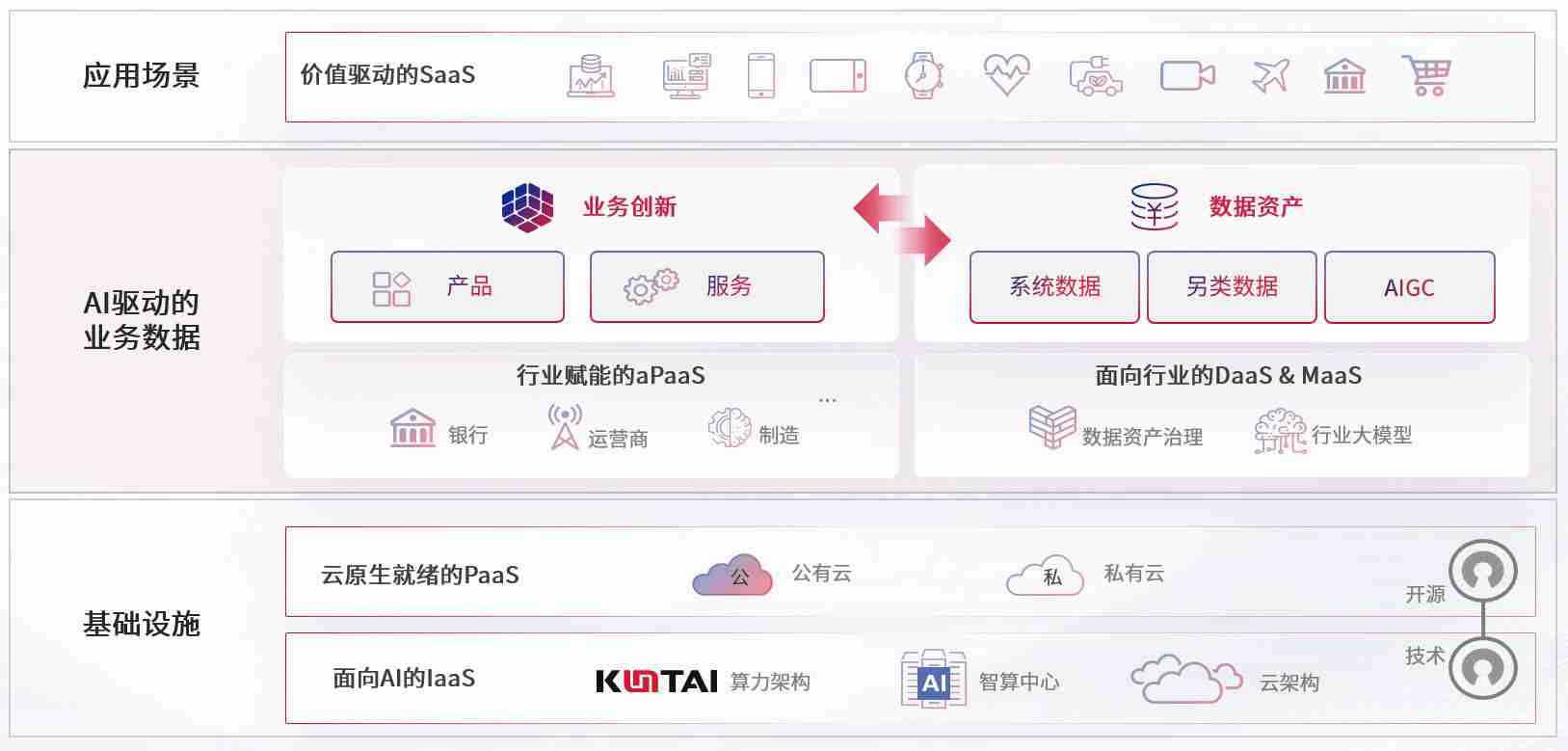 数字时代,,,,围绕企业数字化转型的关键要素,,z6com尊龙数码开创性的提出数云融合战略和技术体系框架,,,着力在云原生、、、数字原生、、、AI原生和信创产业上架构产品和服务能力,,,为处在不同数字化转型阶段的快消零售、、、、汽车、、金融、、、、医疗、、政企、、、教育、、运营商等行业客户提供泛在的敏捷IT能力和融合的数据驱动能力,,,构建跨界融合创新的数字业务场景和新业务模式,,助力企业级客户建立面向未来的核心能力和竞争优势,,全面推动社会的数字化、、、、智能化转型升级。。